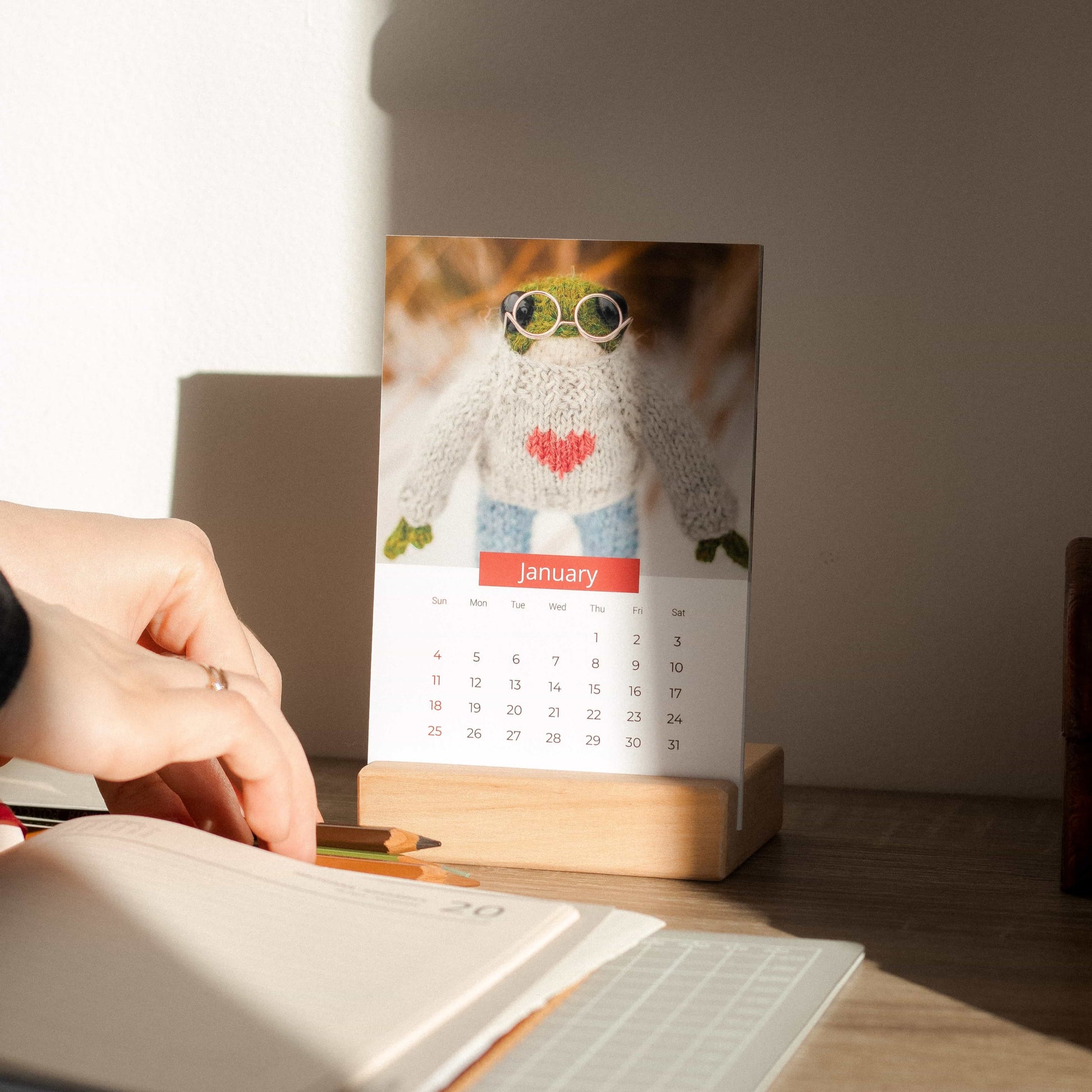 With a wooden stand and high-quality photo print, it’s both practical and decorative — a lovely daily companion for the year.