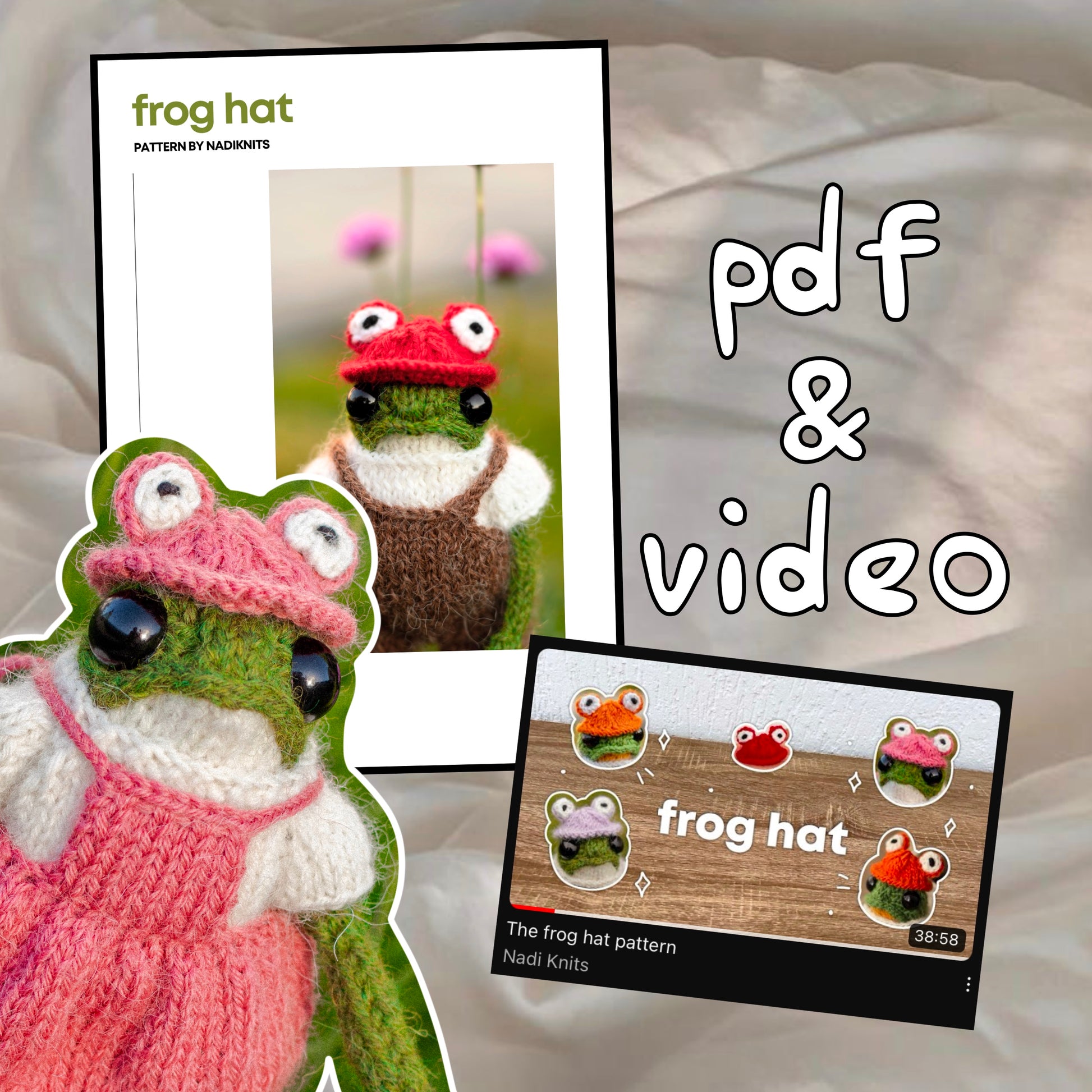 Frog Hat with Eyes Knitting Pattern for Knitted Frog (PDF)
