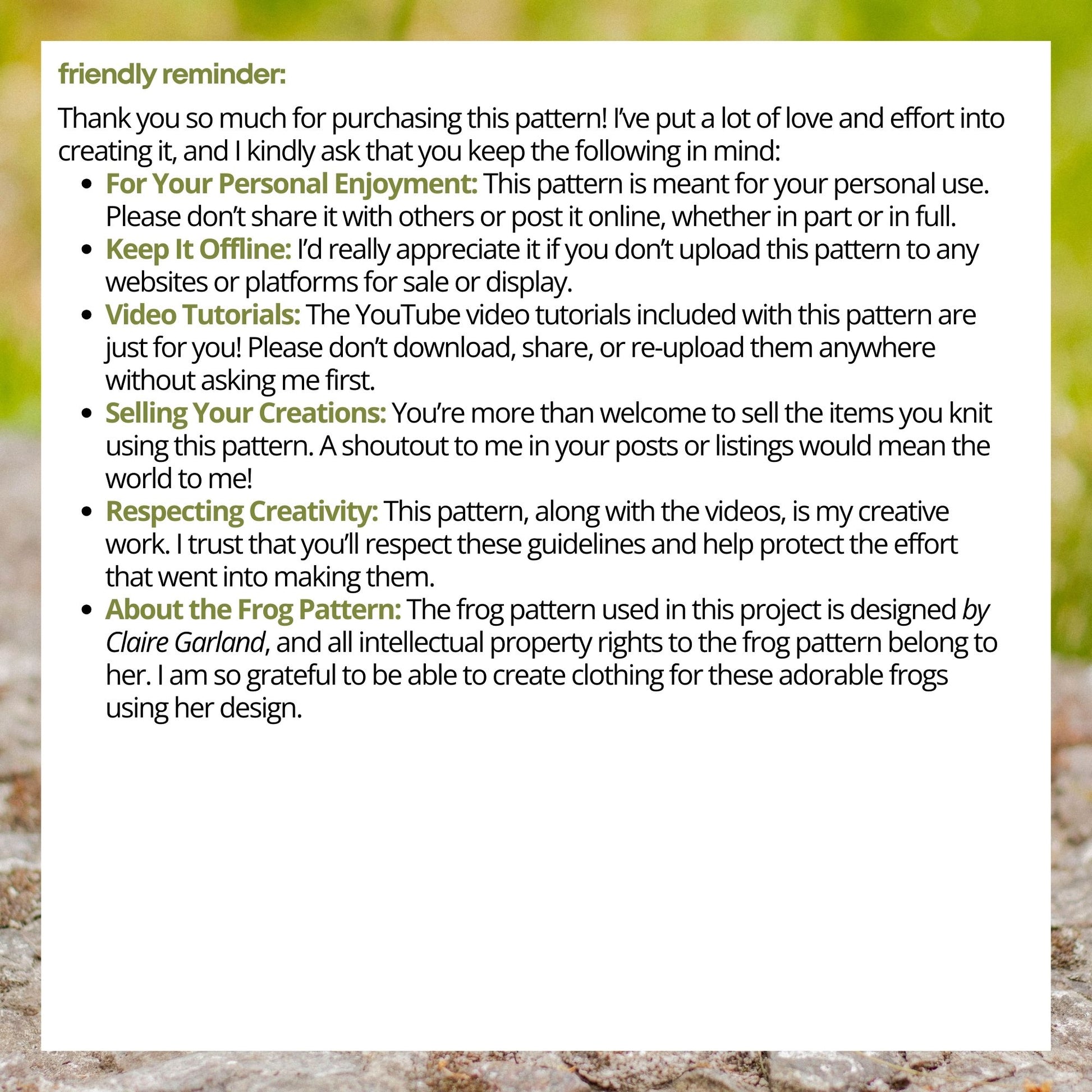 ⢠Frog pattern not included