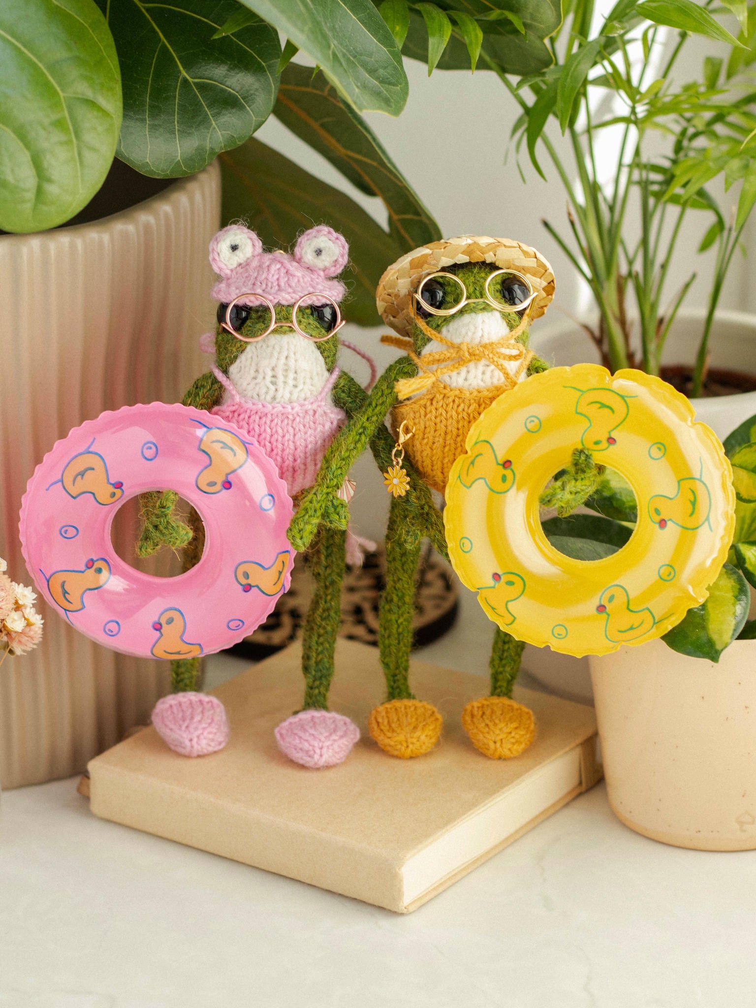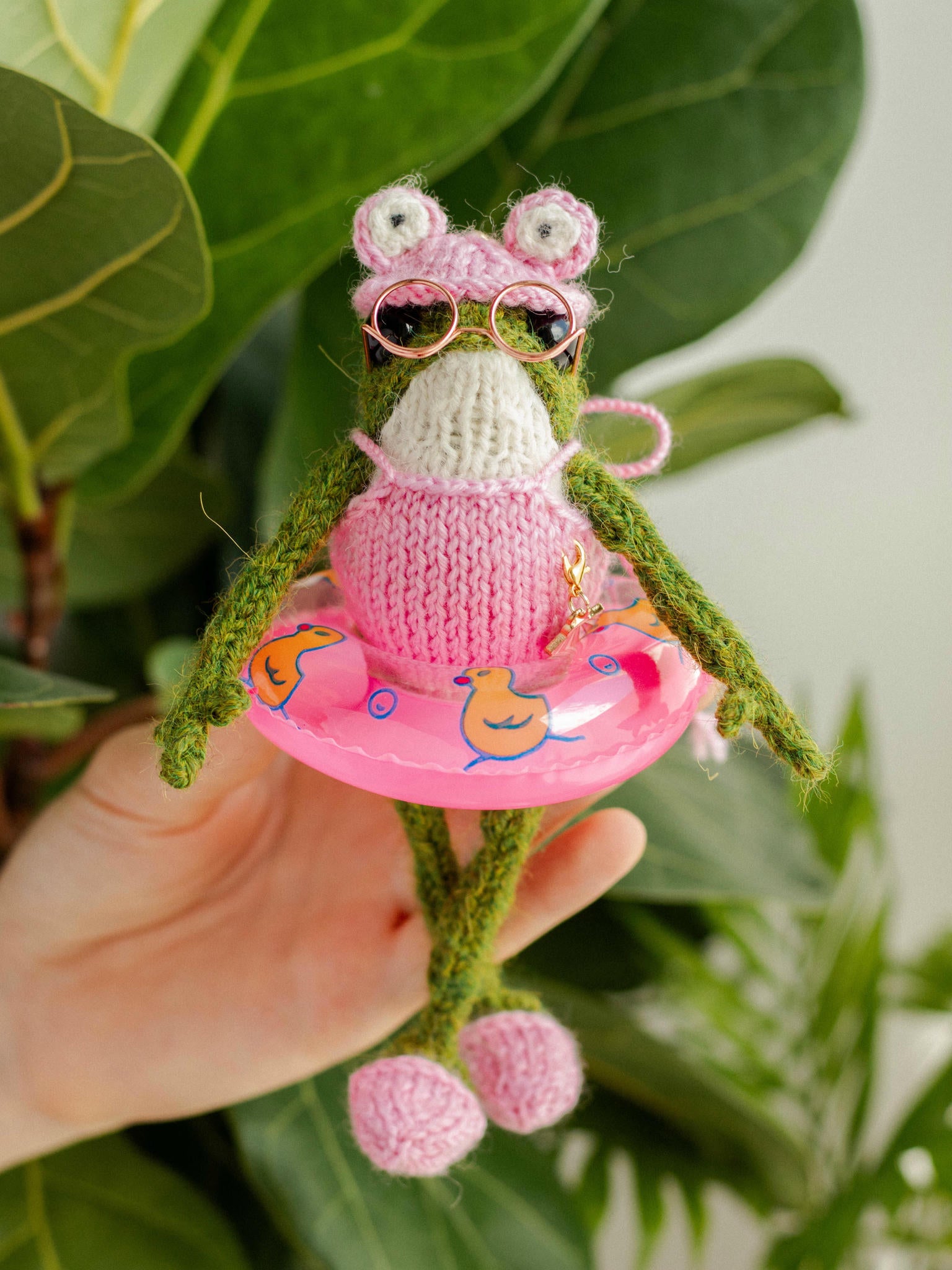 This adorable miniature swim ring is the perfect photography prop for knitted frogs and dolls. Featuring a cheerful duck pattern and a classic inner tube shape, this 3.54" (9 cm) pool float is a must-have for dollhouse displays or vacation-themed scenes. It is a lightweight and colorful froggy accessory that makes any shelf or miniature setup look more playful.