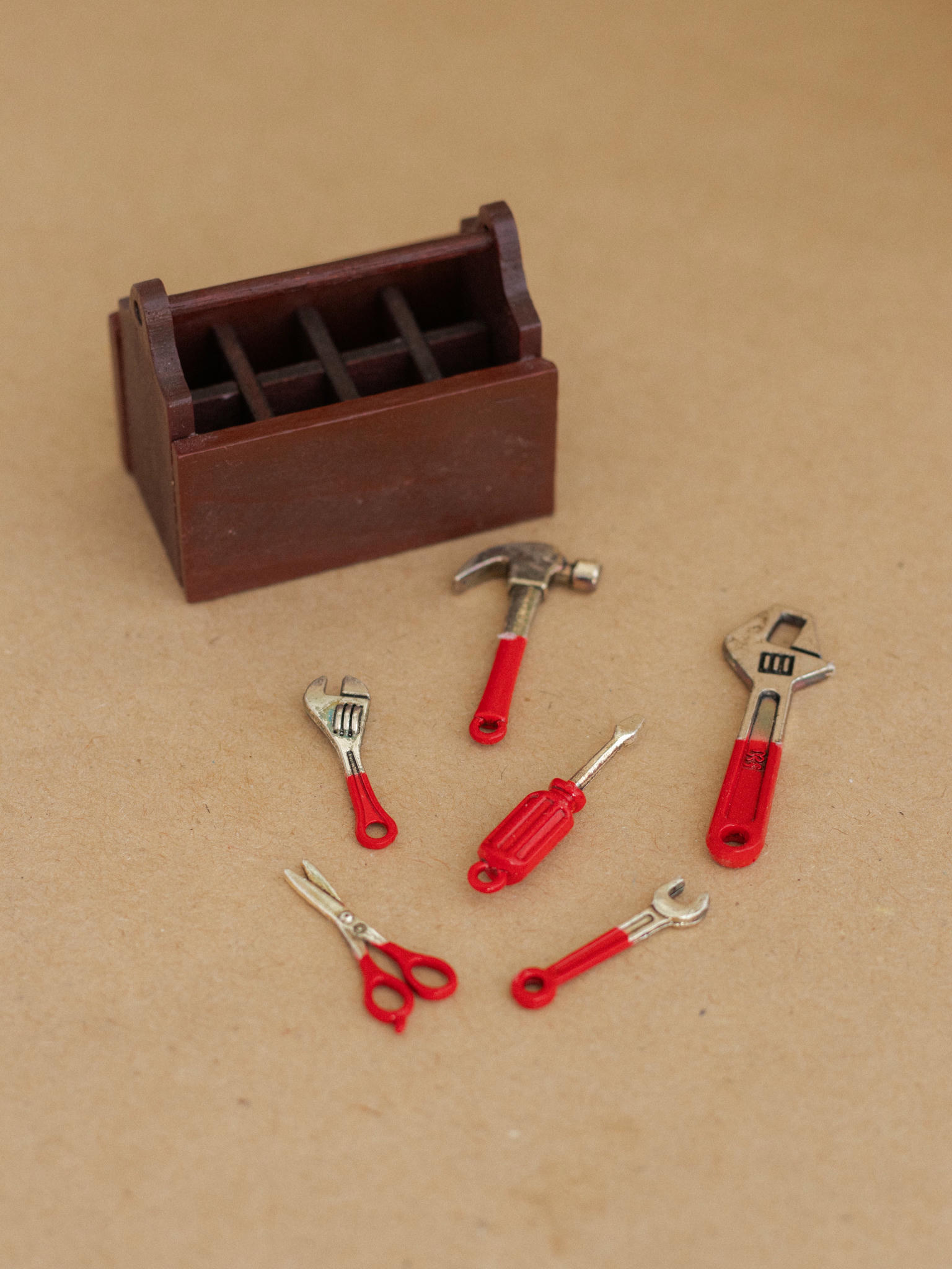 This highly detailed 1:12 scale miniature tool set is the perfect professional prop for handcrafted knitted frogs, Blythe dolls, and creative dollhouse displays. Measuring 1.73" x 1.02", this compact wooden-style toolbox includes 6 realistic tools and is designed to add a soulful, hardworking touch to any miniature workshop or bookshelf scene.