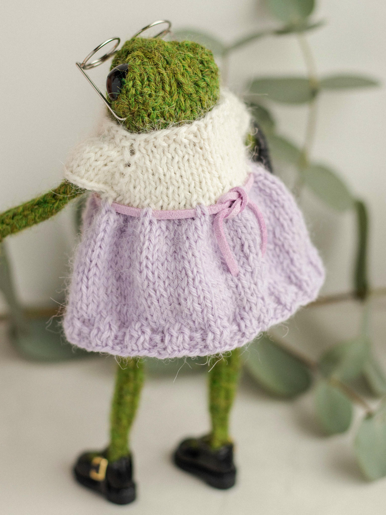 Miss Hyacinth is 6.3 inches (approx. 16 cm) tall and arrives wearing the outfit shown in the photos — a soft white knitted sweater and a beautiful purple knitted dress. In her travel box, you’ll also find her miniature hyacinth bouquet, stylish wire-frame glasses, and a few small gifts prepared especially for you❤️.