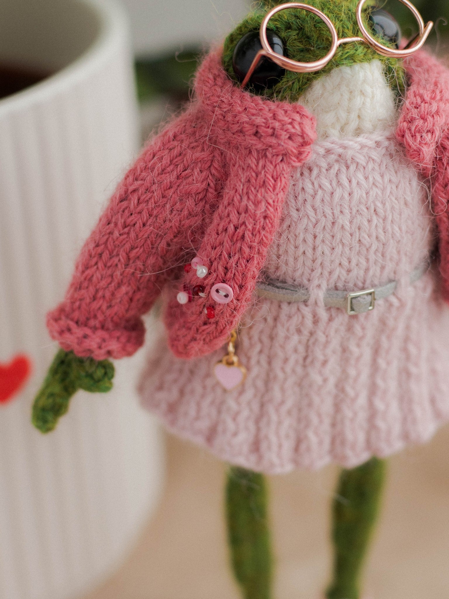 Miss Retro Frog is 6.3 inches (approx. 16 cm) tall and will arrive wearing the outfit shown in the photos. Inside her travel box, you’ll also find charming accessories and a few small gifts prepared especially for you❤️