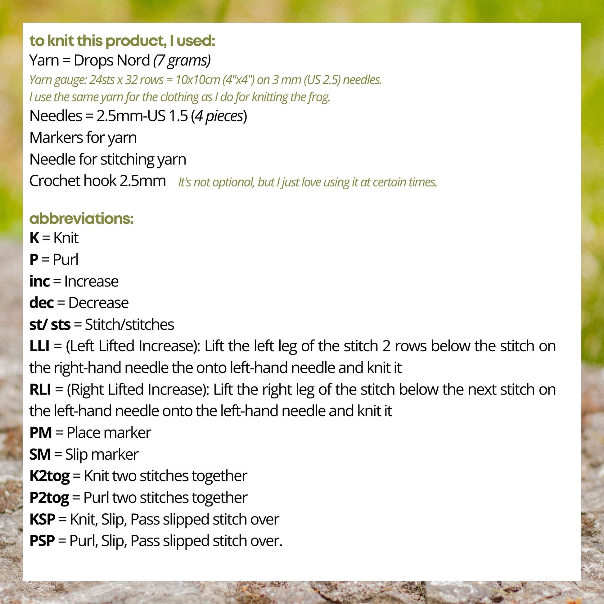 Perfect for creative knitters who love making frog clothes and toy outfits.