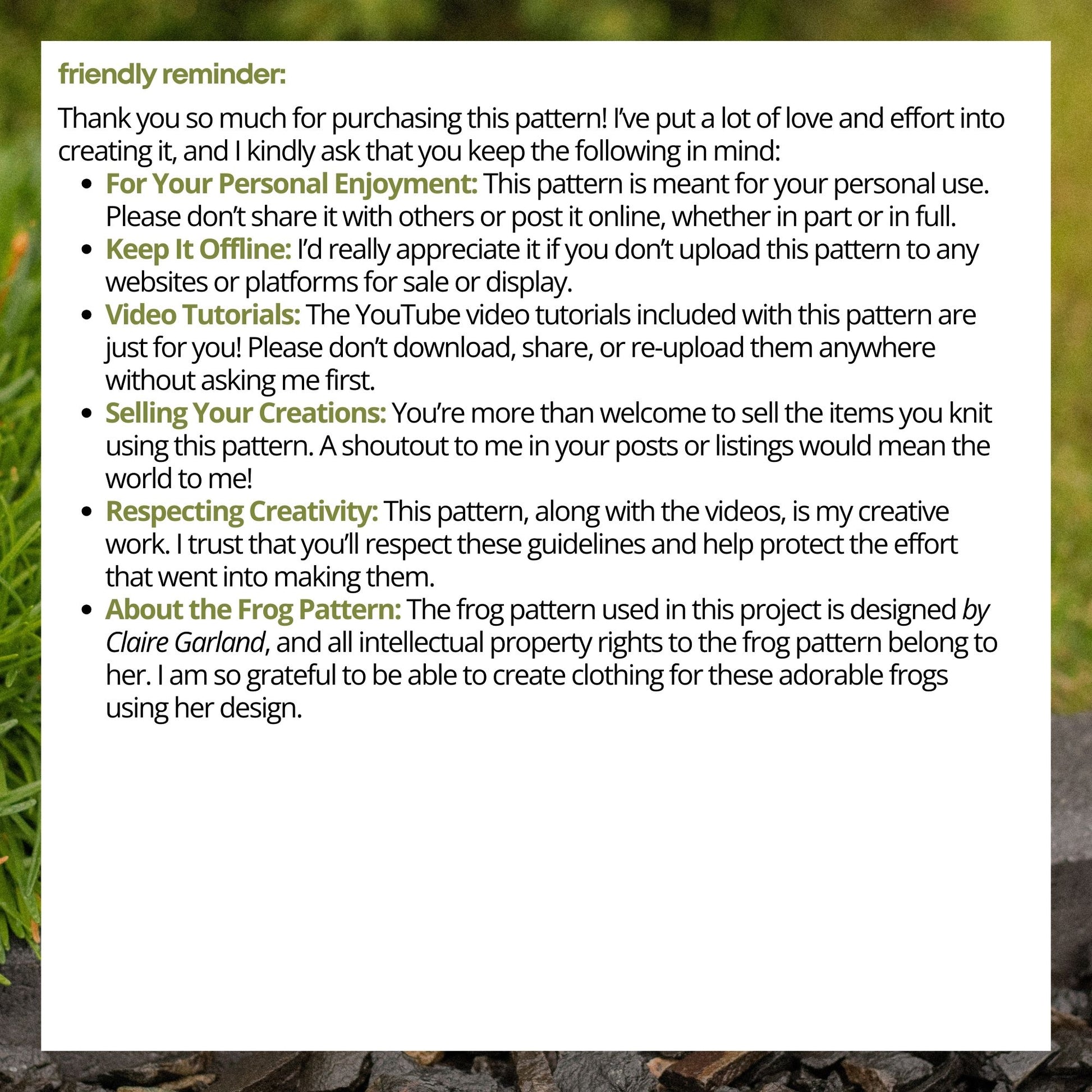 The frog pattern itself is not included and must be purchased separately.