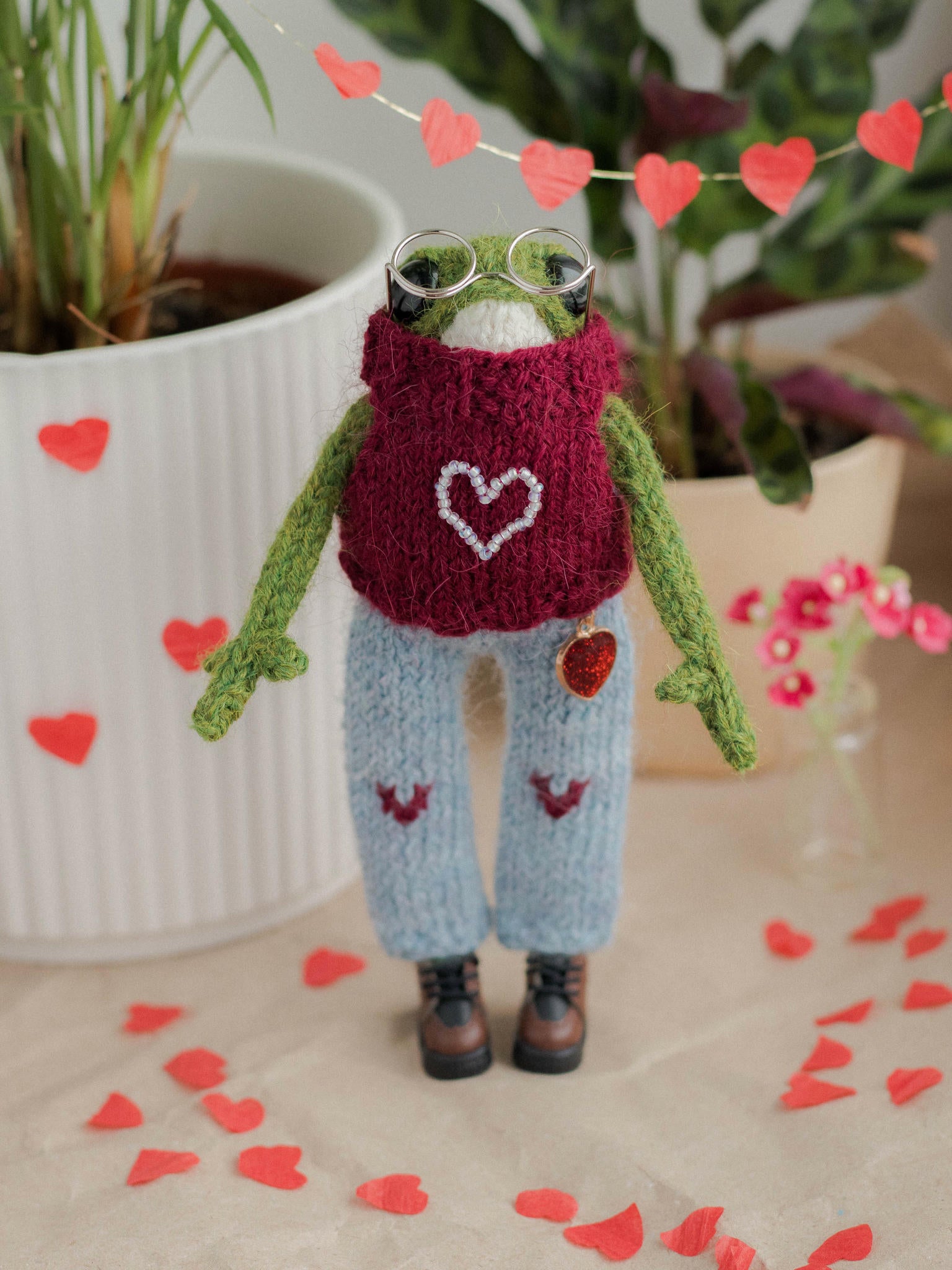 These stylish Star shoes are the perfect accessory for your favorite knitted frogs. Whether your froggy friend is going for a walk in the garden or posing for a cozy photo, these shoes add a touch of "high-fashion" to their look.